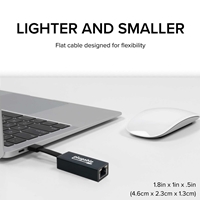 The Plugable USB C Ethernet Adapter (USBC-TE1000) is a great choice for users to add Gigabit Ethernet to their computer via USB Type-C. Built on the Realtek RTL8153 chipset, this adapter is capable of speeds of 10/100/1000Mbps for fast, stable Ethernet access. Measuring in at 1.8in x 1in x .5in (4.6cm x 2.3cm x 1.3cm), the small, compact size is great for travel and flexible flat cable allows the adapter to adapt to your workspace.