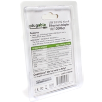 The Plugable USB 2.0 OTG Micro-B to 10/100 Fast Ethernet Adapter (USB2-OTGE100) combines the compact external design and wide compatibility of our popular USB2-E100 adapter, with an OTG Micro-B connector.